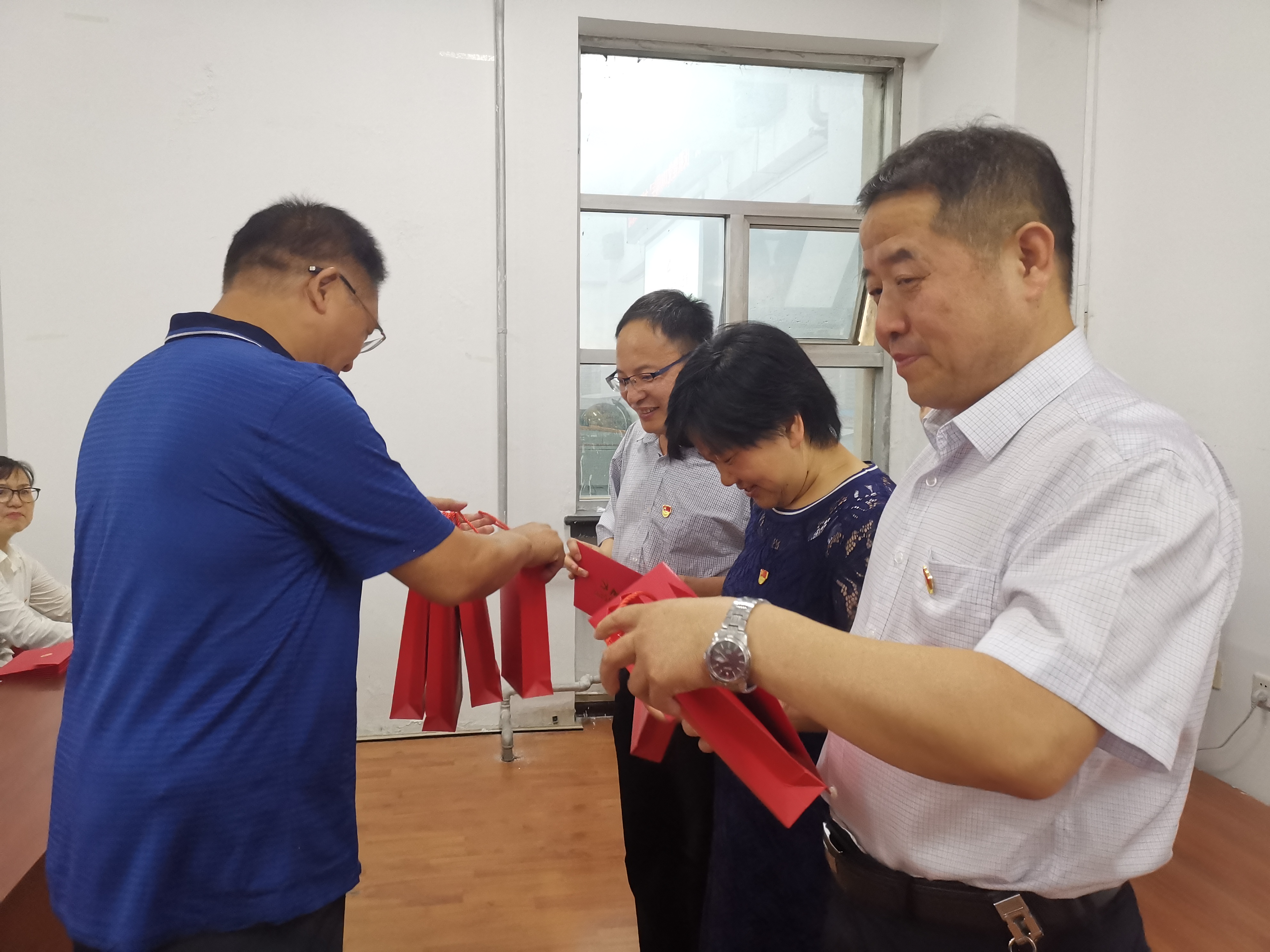 活动中,学院还为部分党员同志过了“政治生日”,由柴文华、李楠明、孙庆斌三位老党员为每一位入党日期为上半年的教师党员赠送了特制的政治生日贺卡和礼物,贺卡上准确地记录着每一位党员的入党日期,在党年龄,时刻提醒大家要牢记党员身份,践行党的初心使命;赠送给党员的签字笔上清晰地印有“为党育人 为国育才”八个大字,寓意全体教师党员将以高度的责任感与使命感落实立德树人根本任务,作育英才,为党和国家培养和输送合格的建设者和接班人。