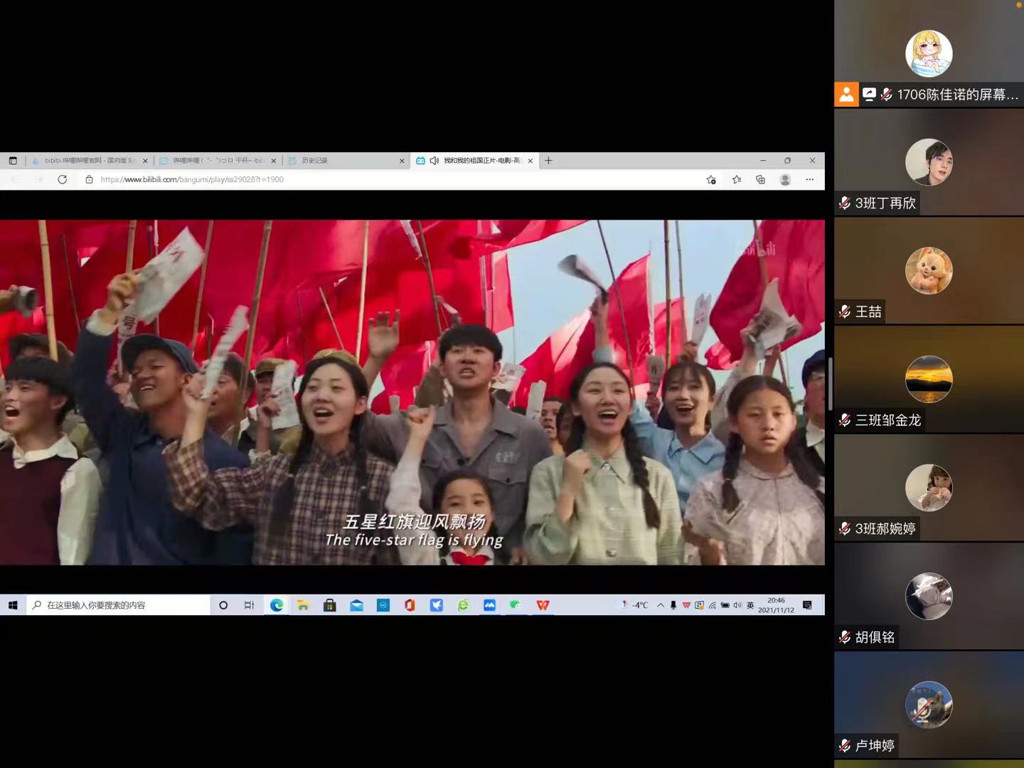 开展了线上观影活动,同学们共同观看了电影《我和我的祖国》的片段。