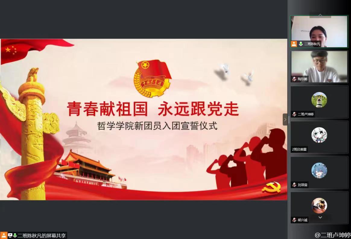 于2022年6月9日下午线上召开新团员入团仪式。本次仪式由21级哲学二班团支书陈秋凡主持,美剧天堂