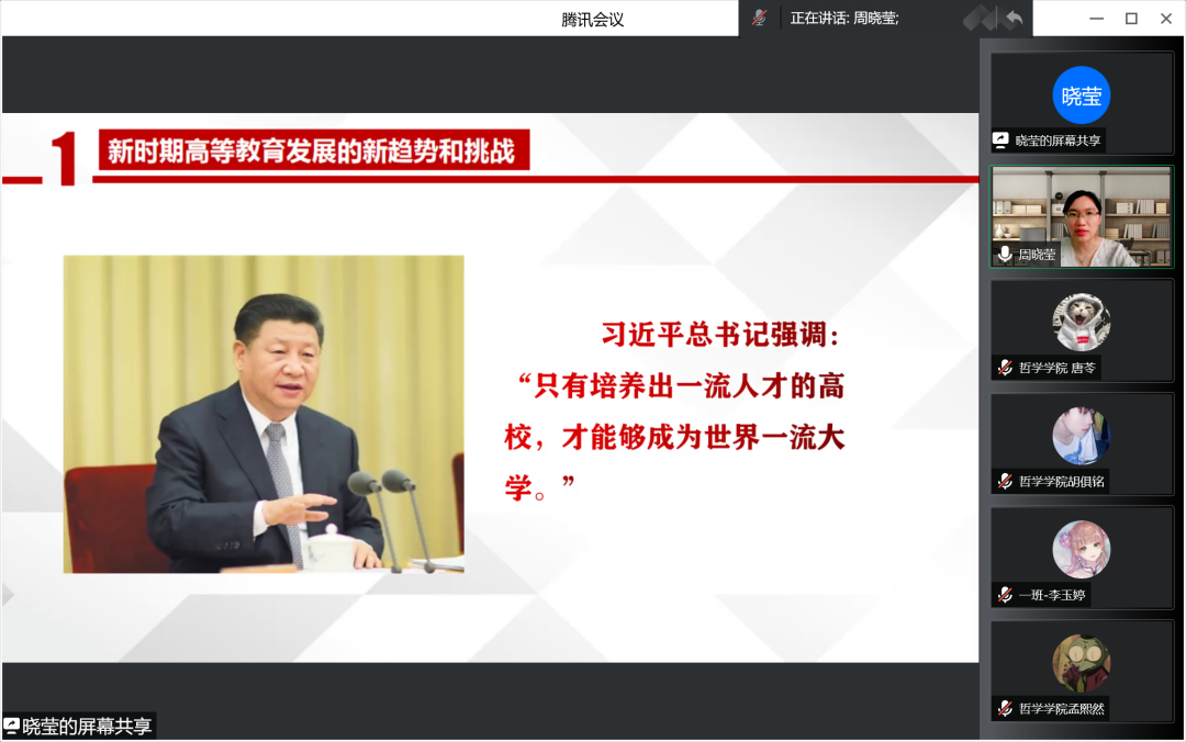 周晓莹老师担任此次讲座主讲人,党总支副书记张丽丹老师主持会议,组织员吴红英老师、正处级辅导员孙庆斌老师、团委书记张博伦老师、团委副书记焦瑞老师出席讲座,哲院学院全体党员、预备党员及入党积极分子参加讲座。