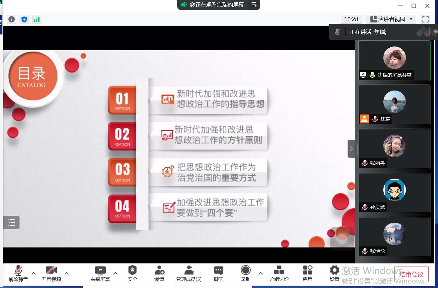 党总支副书记张丽丹老师、19级辅导员孙庆斌老师、20级辅导员张博伦老师、21级辅导员焦瑞老师参加集中学习。