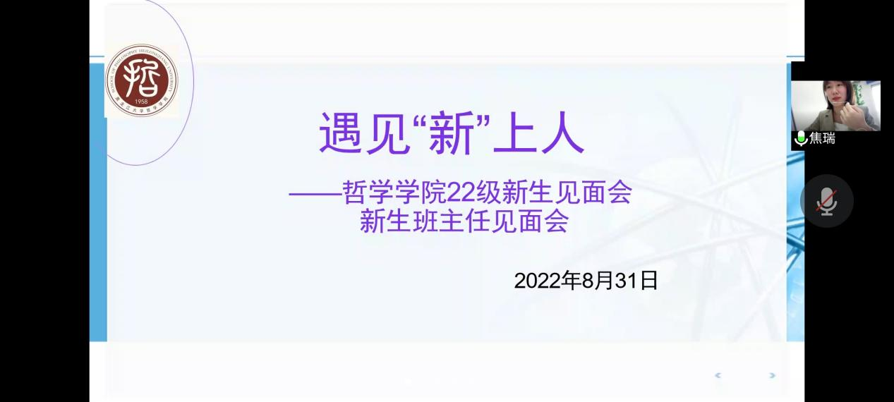 于2022年8月31日下午在腾讯会议举行2022级新生见面会暨新生班主任见面会。2022级新生辅导员焦瑞老师,2022级学生班主任盖毓鑫、卢坤婷、陈秋凡以及2022级全体新生参加本次会议。