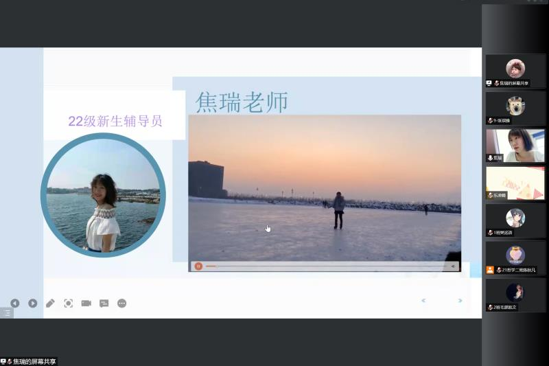 会议伊始,焦瑞老师通过一段视频进行了简单的自我介绍,焦老师强调自己做事的宗旨:在什么阶段、在什么岗位,都要做好自己本职的事。焦老师表示她正是因为对学生的热爱才坚定地选择了辅导员这个职业,她也希望通过对自己求学经历,用自己的所学所感来帮助各位新生在未来的四年里,少走弯路,共同成长。希望各位同学在四年后回望自己的大学生活时没有遗憾。接下来各位学生班主任和2022级新生依次进行自我介绍。
