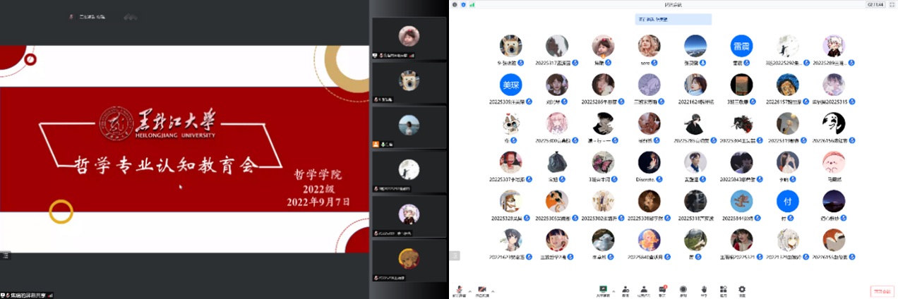 于2022年9月7日15:40召开哲学专业认知教育会,本次会议由焦瑞老师主持,周来顺老师、周晓莹老师、雷震老师、张灵馨老师以及22级全体同学参加此次会议。