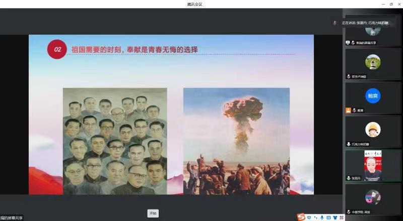 第二章节主题为“奉献是青春无悔的选择”。新中国成立之际,一众青年人毅然决然,放弃国外优异条件,回到祖国,为核武器等事业做出了卓越贡献。张老师结合钱学森、邓稼先等科学家的故事,带大家感受伟人的精神,向大家讲述在祖国需要的时刻,奉献是青春无悔的选择。