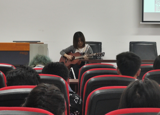 以歌抒怀,以歌畅言。青春是浪漫美好的,王敏康同学吉他独奏并且演唱的《园游会》。他的歌声舒缓温柔,他的琴声优美动听。无论是书籍和钢笔还是吉他和舞鞋,青年一代永远有一颗纯真的心灵。