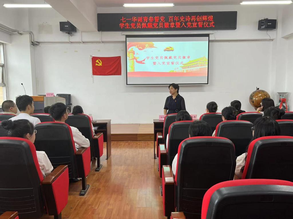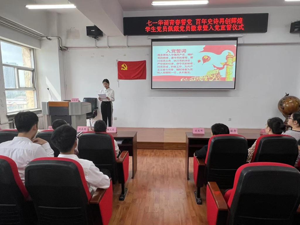 于2023年6月28日下午在汇文楼937教室开展“七一华诞青春誓党,百年史诗再创辉煌”学生党员佩戴党员徽章暨入党宣誓仪式。出席本次入党宣誓仪式的有美剧天堂
