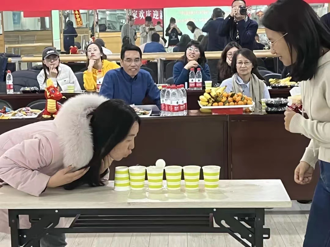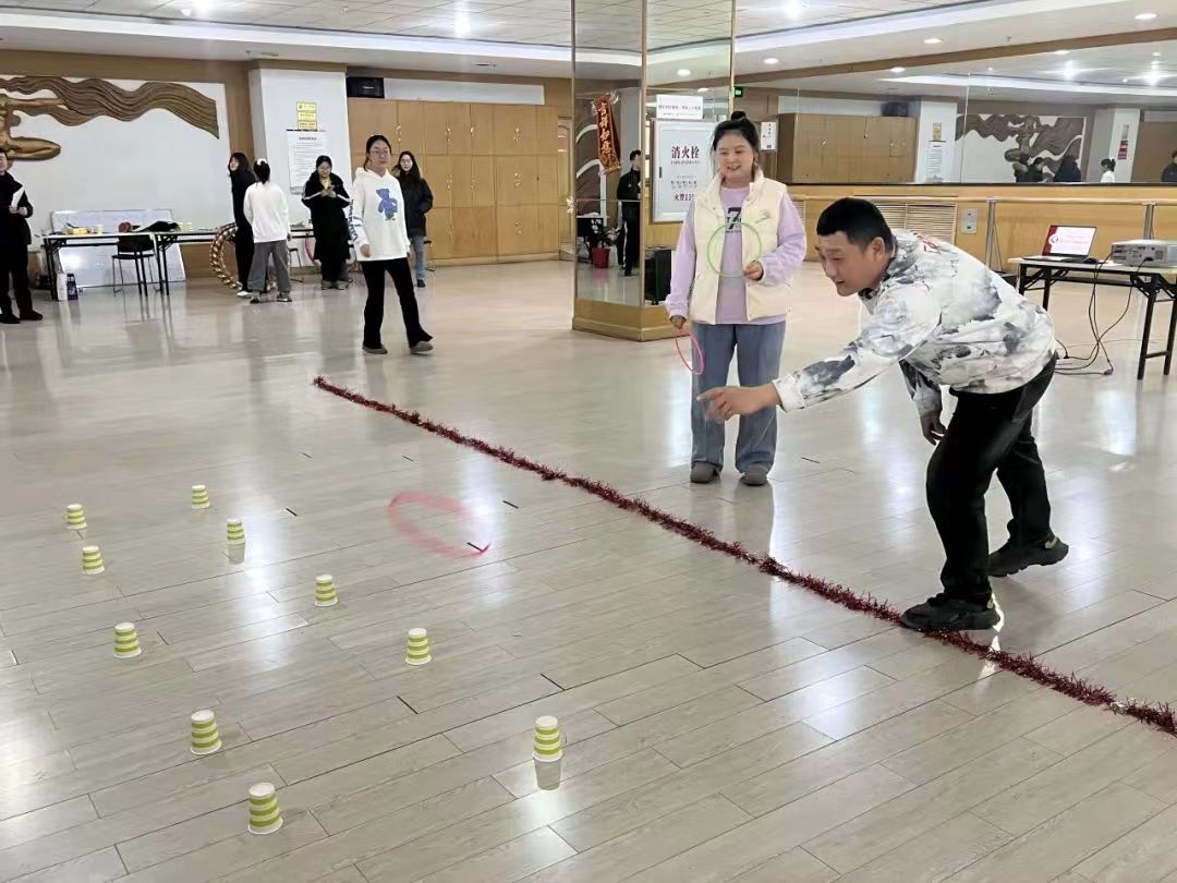 在趣味运动会中,学院设置了《花样“呼啦圈”》《猜歌名》《你比划我猜》《跳跃乒乓球》《蒙眼考默契》《套圈》《趣味凑数字》等游戏环节,老师们积极参加,配合默契,气氛热烈。