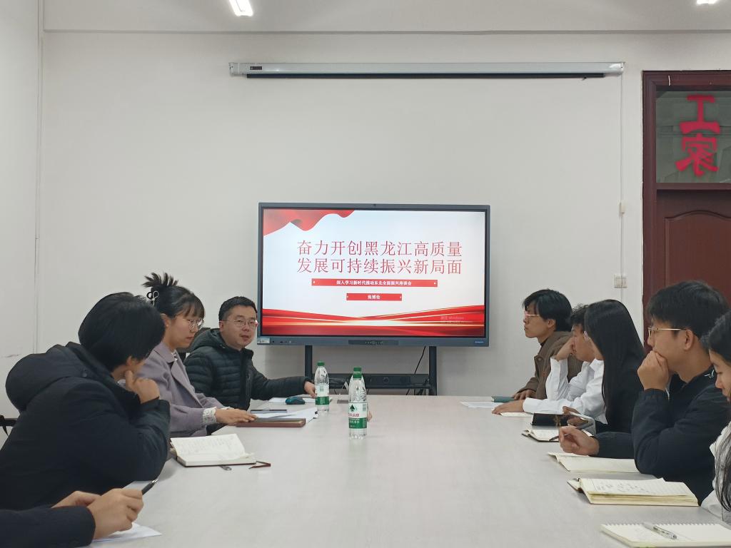 团委书记张博伦老师以《奋力开创黑龙江高质量发展可持续振兴新局面》为题,带领同学们开展学习,张老师讲解了教育在推动东北振兴中的重要性,结合美剧天堂