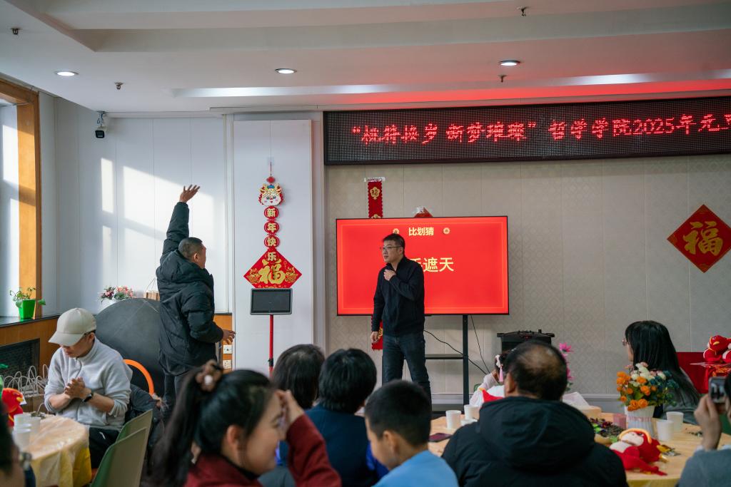 哲思妙趣,智游言欢。进入游戏环节,现场气氛愈发活跃。通过比划猜、看图猜字谜、“害你在心口难开”、“眼疾手快”、哲学版“谁是卧底”等游戏,各小组参赛选手配合默契,积极开动脑筋,现场不时传出欢呼声,现场沉浸在一片欢乐的海洋中。