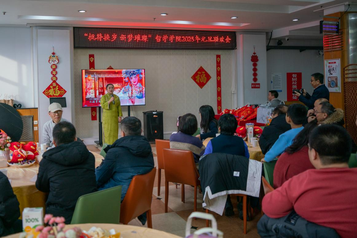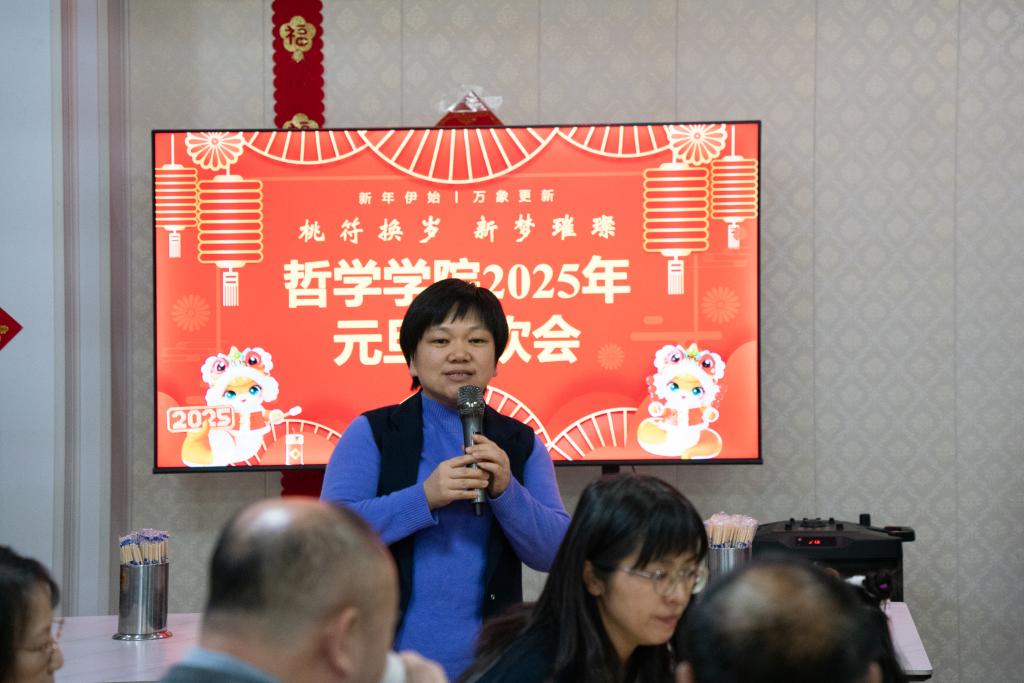 院长蒋红雨致辞,蒋老师回顾了过去一年学院在教学、科研等方面取得的丰硕成果,并对新的一年学院的发展提出了殷切期望,鼓励老师们在新征程中继续砥砺前行。紧接着,学院工会主席雷震老师也为大家送上了真挚的新年祝福,言语间满是对大家的关怀与期许,让温暖与力量在会场上流淌。