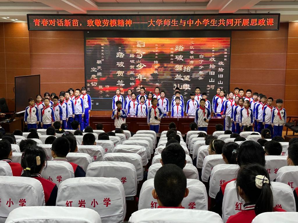 的同学们化身为“红色故事讲解员”,带领小学生们讲述赵一曼、李兆麟革命先烈的事迹,聚焦王进喜、马永顺、马旭等杰出劳模的事迹,引领学生们从革命先烈的绝命诗中读懂“舍生取义”,在劳动模范的俯身躬行中明白“劳动最光荣、劳动最崇高、劳动最伟大、劳动最美丽”的道理。