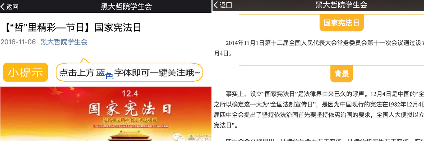 为弘扬宪法精神,增强同学们法治观念,在国家宪法日来临之际,根据《教育部办公厅关于举办全国学生“学宪法讲宪法”活动的通知》及省教育厅和学校相关工作要求,2016年11月初,哲学学院开展了学习宪法的系列活动。