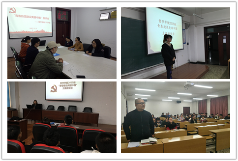 座谈中,2014级党员袁传志同学带领大家回顾了党的十九大主题——不忘初心,牢记使命,高举中国特色社会主义伟大旗帜,决胜全面建成小康社会,夺取新时代中国特色社会主义伟大胜利,为实现中华民族伟大复兴的中国梦不懈奋斗;谈到了他对本次大会的学习心得,要保持高度的文化自信。党员陈洋同学还就习近平总书记谈到的“我国社会主要矛盾已经转化为人民日益增长的美好生活需要和不平衡不充分的发展之间的矛盾。”观点发表了自己的看法,表示作为一名党员,要时刻关注党的方针政策。2015级学生党员代表着重就党的十九大报告中提到的“实现中华民族伟大复兴”发表了自己的观点,谈到自己观看到此时的振奋之情。2016、2017级积极分子和学生代表们表示要紧随时代潮流,了解社会各方面的新动向,努力学习新知识,为社会主义现代化建设事业添砖加瓦,希望自己能够早日成为中共党员,为社会主义现代化建设贡献自己的一份力量。