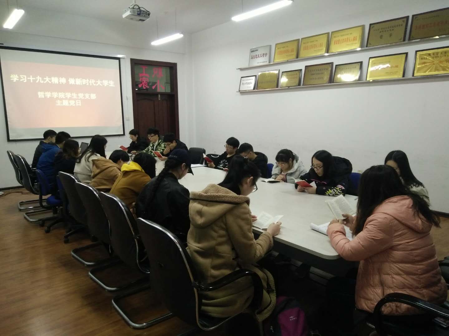 学生党支部于汇文楼922室开展了“学习十九大精神,做新时代大学生”主题党日活动,活动由学生党支部书记张博伦主持,全体学生党员参加了本次活动。