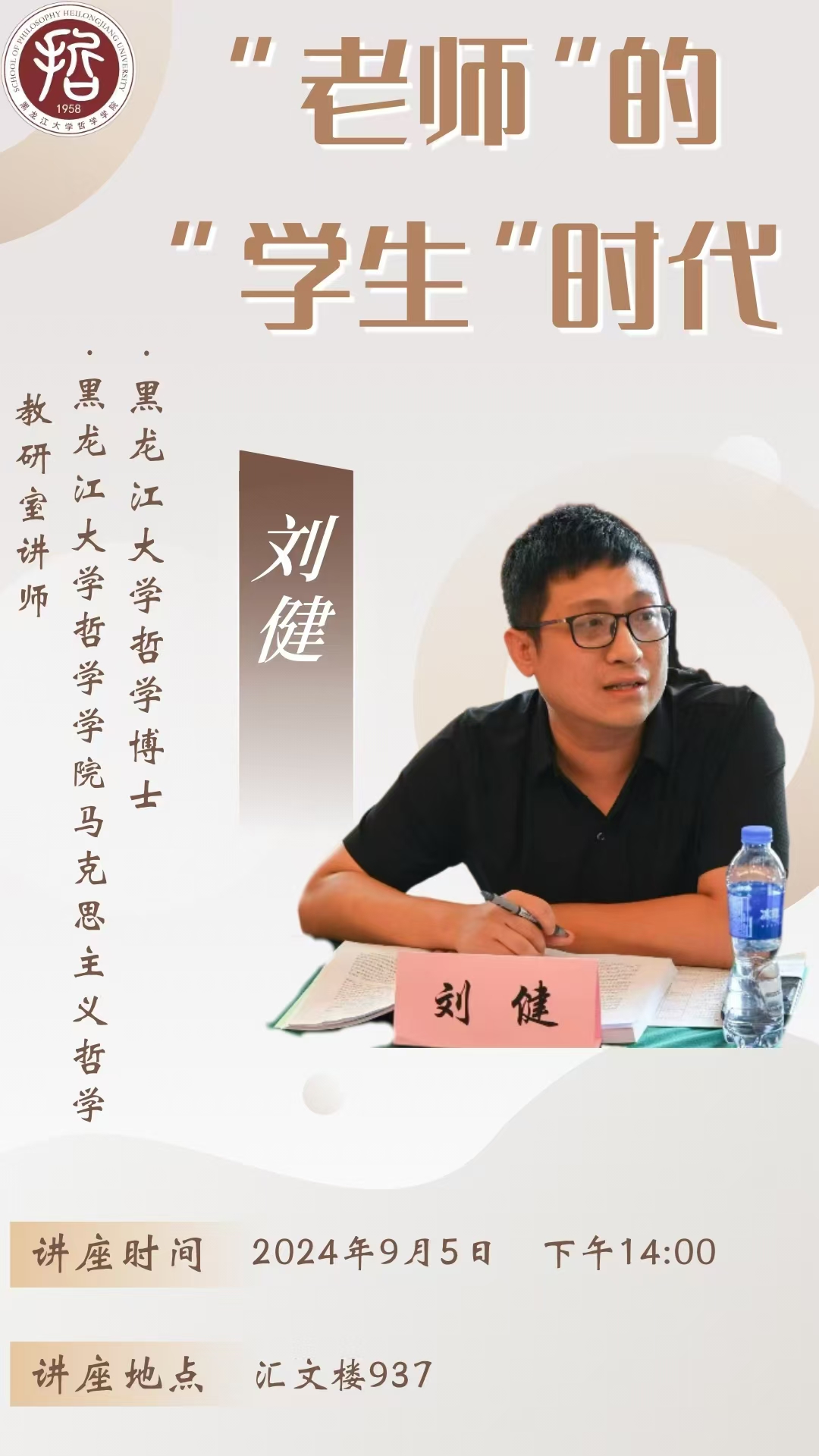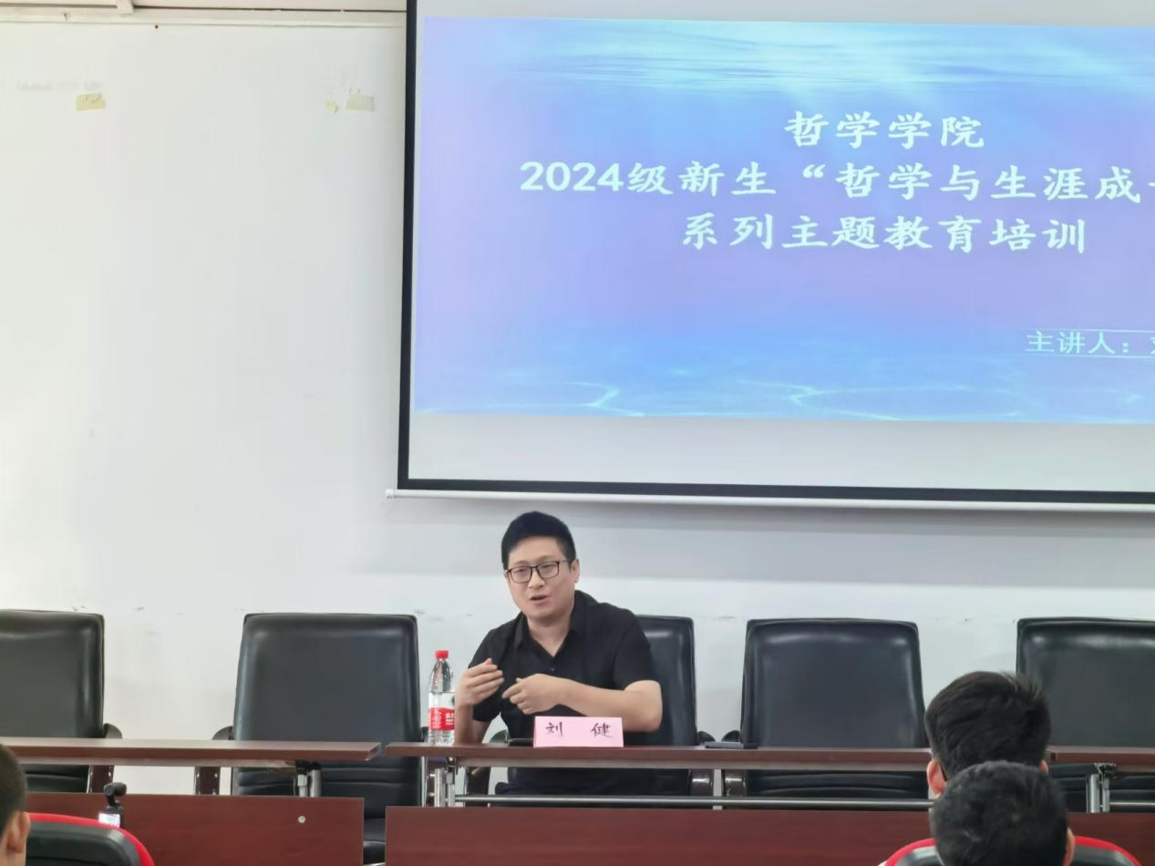 刘健老师于2024年9月5日在汇文楼937会议室,开展了“哲学与生涯成长”系列主题教育培训之《‘老师’的‘学生’时代”》专题讲座,为新生们开启了一场关于哲学学习与职业规划的智慧之旅。