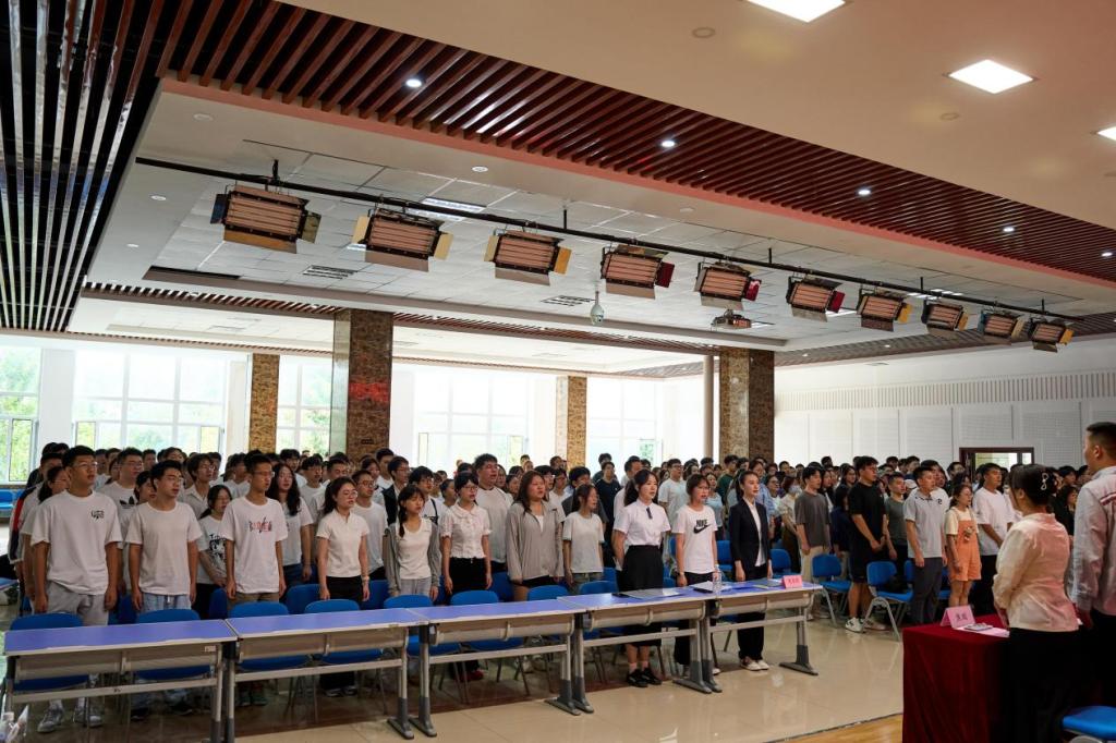 党委书记孙美晖、院长蒋红雨、党委副书记王贵宇、副院长周来顺、校友代表哈尔滨工程大学高清宇、教师代表潘麒羽、正处级辅导员孙庆斌,辅导员焦瑞、赵慧雪及2025级全体本、硕、博新生共同参会。