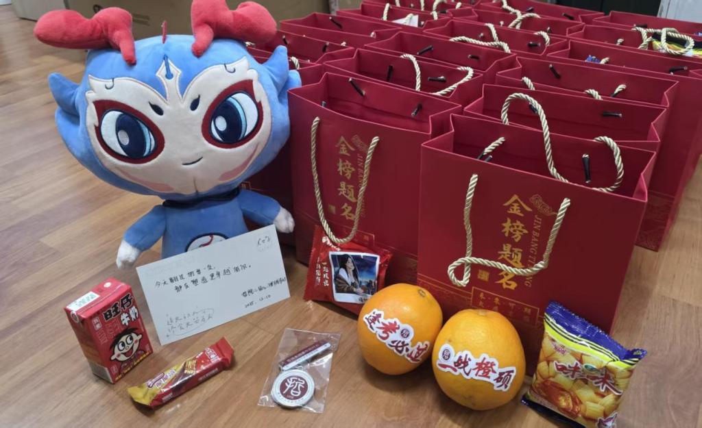 暖礼轻赠,研途生温。学院领导、老师将满载关怀的“爱心礼包”送到考研学生手中,礼包含有二级心理辅导站学弟学妹们书写的祝福明信片、定制书签与橙子、牛奶等零食,每一份物品都寄托着学院的深切祝福。用暖冬之礼驱散备考艰辛,携真挚祝愿静待硕果满枝。