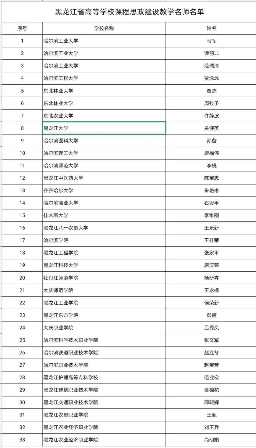 热烈祝贺美剧天堂 关健英教授入选黑龙江省高等学校课程思政建设教学名师!