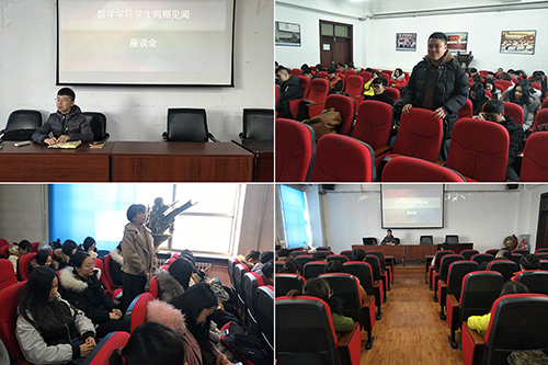 会议伊始,部分同学讲述了自己在寒假的学习生活经历,有的同学外出旅游,增长见识;也有的同学专心学习,丰富知识储备;还有的同学选择打工兼职,锻炼自己的社会实践能力。同学们就家乡变化、春节感受以及社会文明新风气纷纷发表自己的看法,畅谈假期中的所见、所闻、所思、所想。随后,辅导员老师对假期见闻和思想状况进行了简要梳理,对本学期的主要任务和重要事项进行了说明讲解,积极引导同学们,要尽快收心,提高效率,充分认识到自己学习和工作中还存在哪些不足和上升空间,积极调整心态,适时制定并努力实践新学期的目标与计划。最后,辅导员老师对座谈会进行了总结,对同学们过了一个丰富而有意义的假期生活表示欣慰,同时提醒同学们新的学期已经到来,要将精力和重点放到学习中,珍惜大学的美好时光,以饱满良好状态投入到新学期的学习生活中。