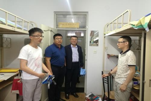 党总支书记孙庆斌,院长罗跃军,副院长蒋红雨、王秋走访了学院毕业生寝室,学院团委书记、辅导员黄影陪同。