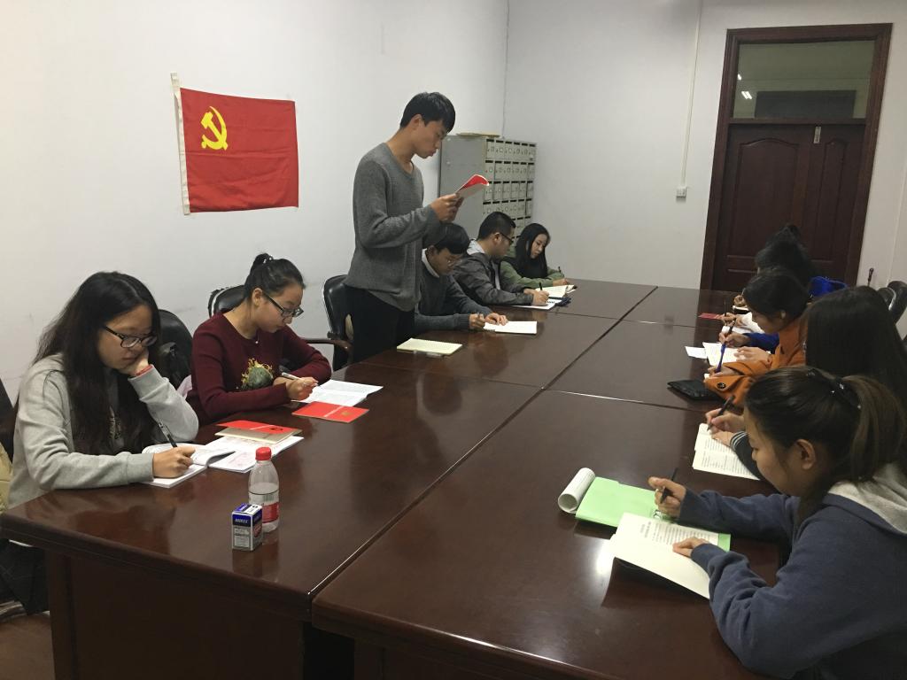 第五十六期入党发展对象培训班全体学员,在汇文楼922室开展了学唱《国际歌》活动。