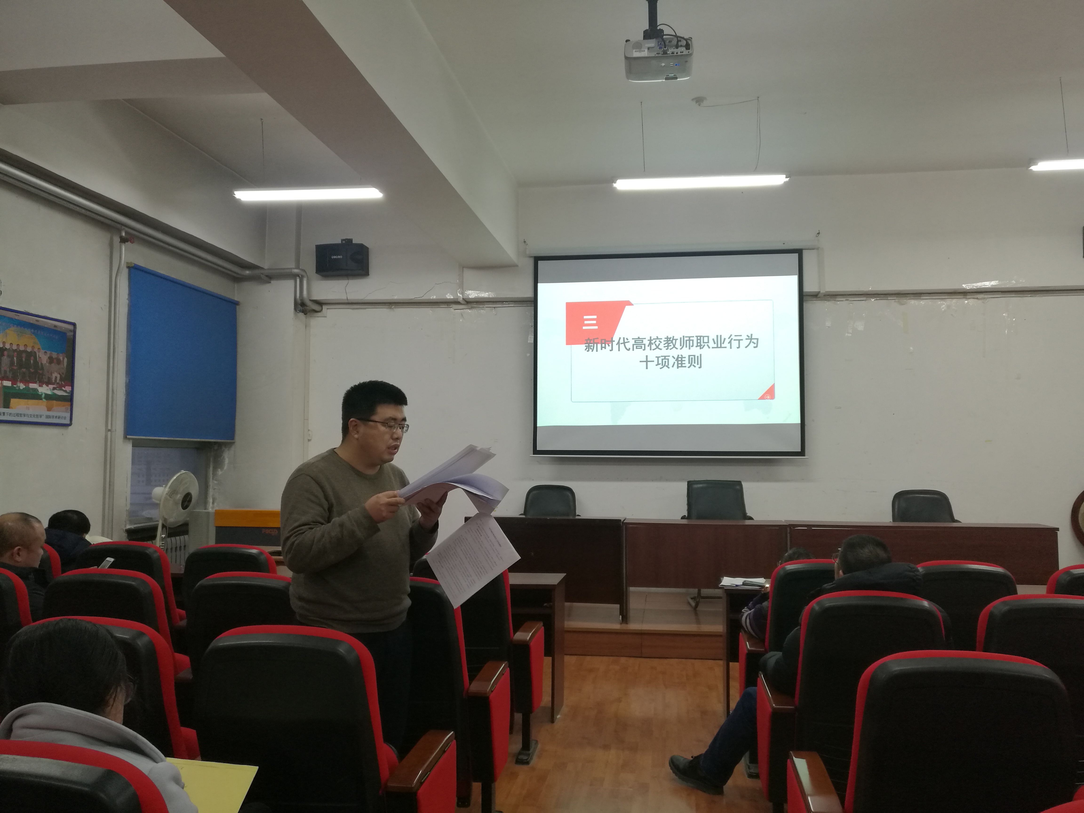 全体教师集中学习了《八项规定出台后严格禁止的财务行为80条》、《新时代高校教师职业行为十项准则》、《关于高校教师师德失范行为处理的意见》三项内容。