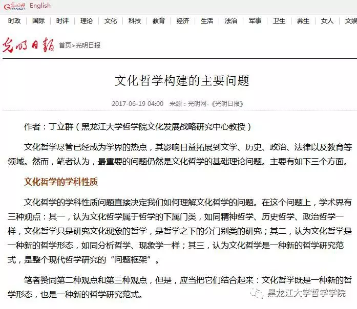 丁立群教授的《文化哲学建构的主要问题》被《新华文摘》2017年第17期全文转载,该文原载于《光明日报》2017年6月19日。
