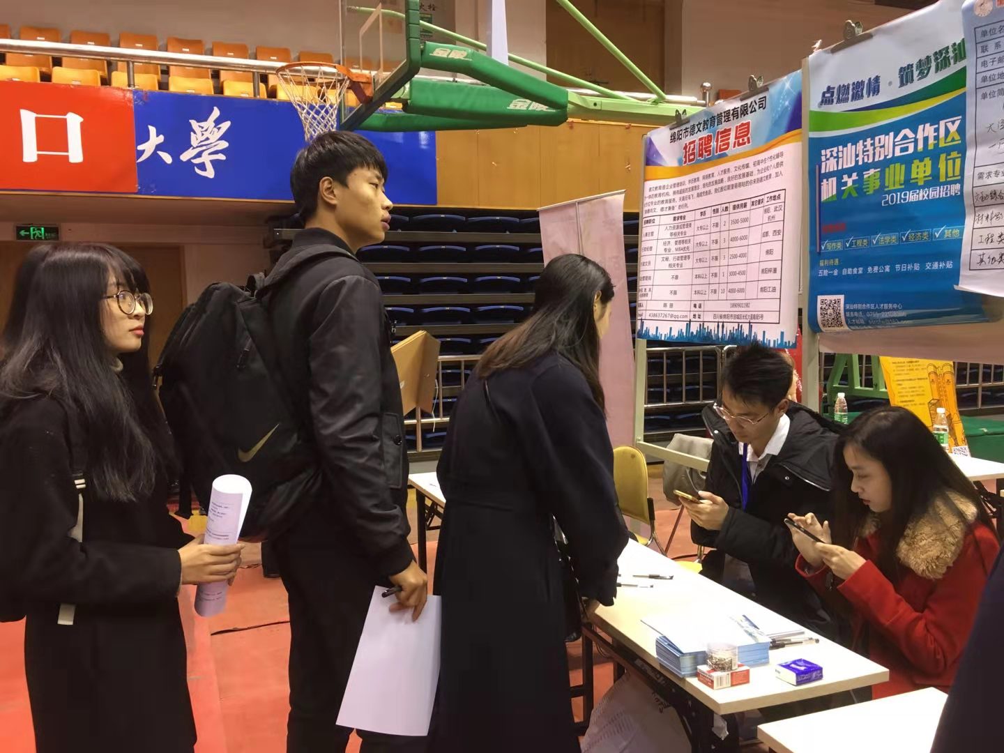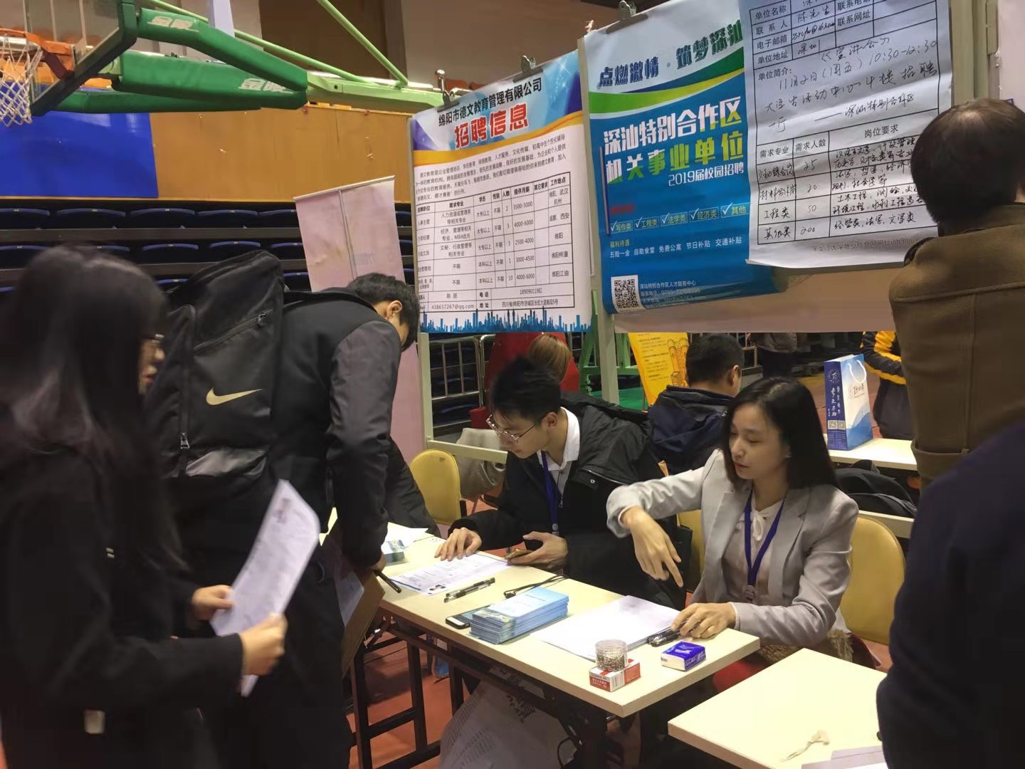 2018年11月13日美剧天堂 学院招生就业处组织开展的2019届毕业生校园招聘会在学院运动馆举行。辅导员张博伦带领我院2019届毕业生参会,期间深入了解了今年用人单位的需求和学生的就业意向,现场及时为应聘的学生提供指导和帮助,主动将我院优秀学生推荐给招聘单位。