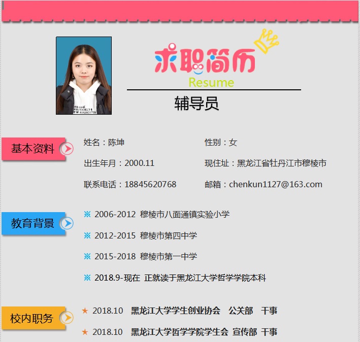 学院党总支秘书黄影老师,团委书记张博伦老师担任了本次大赛评委。活动中,同学们纷纷积极报名,踊跃参与学院共收到来自各个年级30余份简历,参赛作品内容完整、格式清晰、版面大方美观、创意新颖,能充分体现专业特色,展现个性魅力,能吸引用人单位的注意。评审老师从简历的美观设计、结构布置、内容选择等多方面对上交的作品进行了严格的筛选,最终挑选出10份优秀简历。