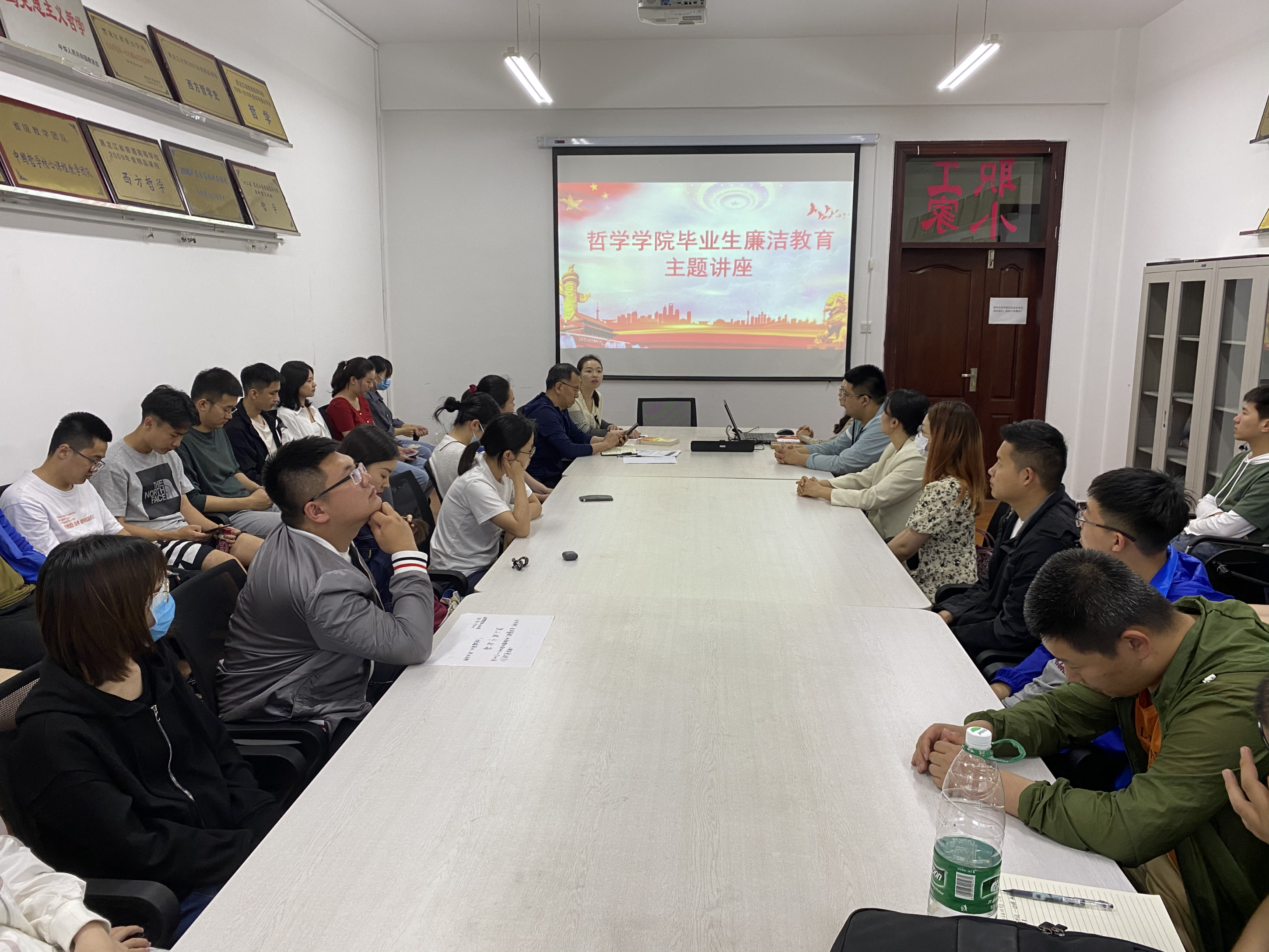 采用线上线下相结合的方式面向2021届全体毕业生召开了廉洁教育主题讲座。学院党总支副书记张丽丹担任主讲、正处级辅导员孙庆斌、党务秘书黄影参加。