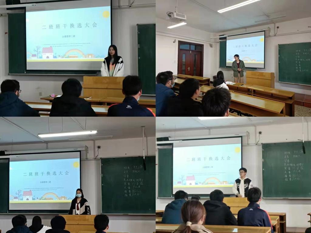 接下来进入班干换选环节:首先请班干部们发言,进行工作总结与表达是否有竞选意愿;其次,请其他有竞选意向的同学进行演讲竞选;随后请全体同学们进行匿名投票;最后进行公开唱票。各位班干们的发言感情真挚、总结到位,同学们纷纷积极参与其中。