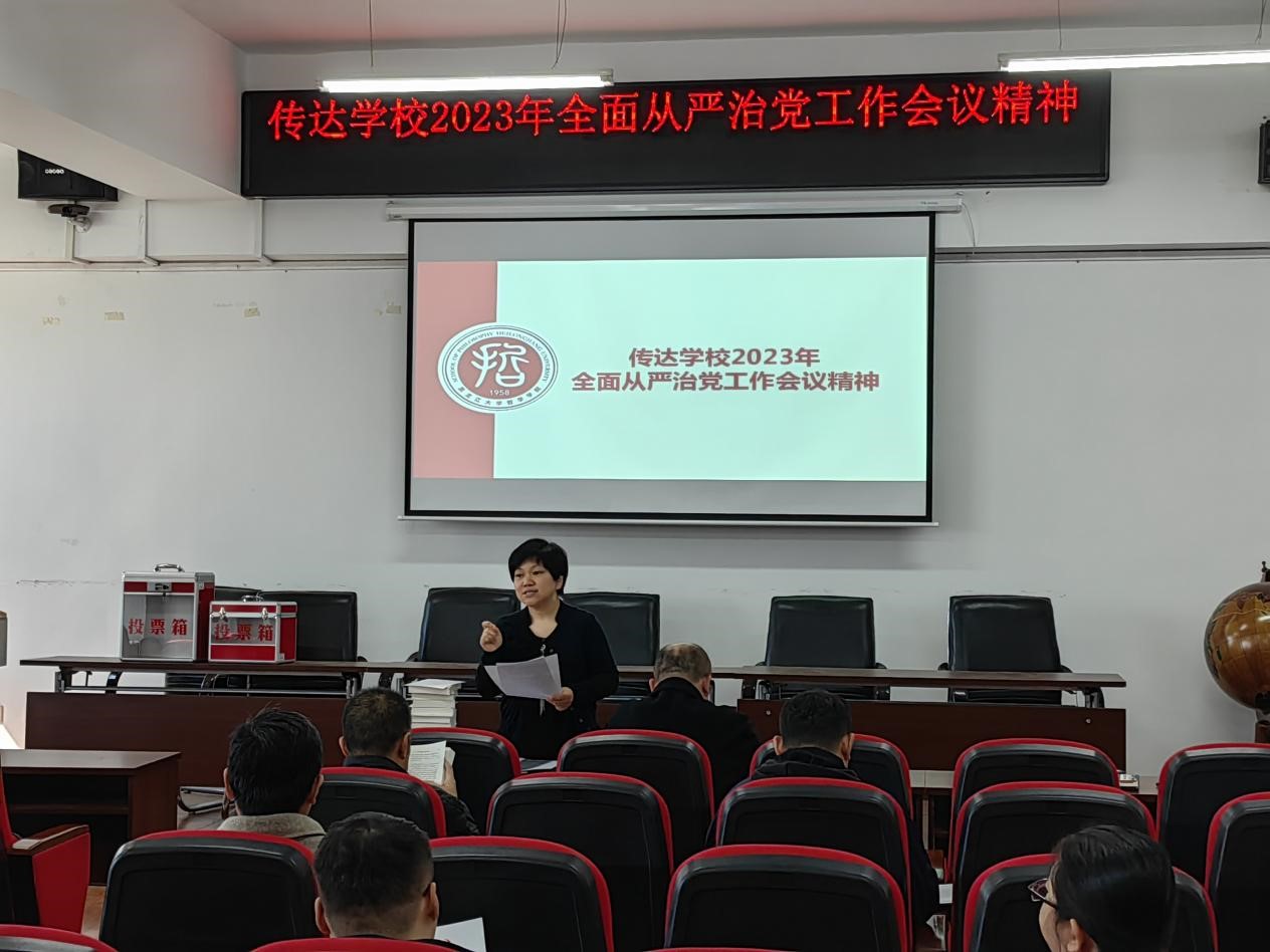 党总支于汇文楼937室在学院工作例会上传达学校2023年全面从严治党工作会议精神,会议由学院党总支书记孙美晖主持,学院全体教职工参加会议。