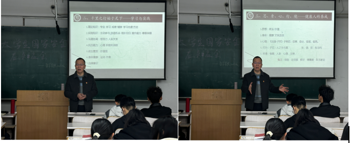 2023级在汇文楼360教室召开了关于推进职业规划、能力建设和行为规范的专题会议。辅导员孙庆斌老师围绕上述三个方面问题做出深入的讲解,2023级全体学生出席本次会议。