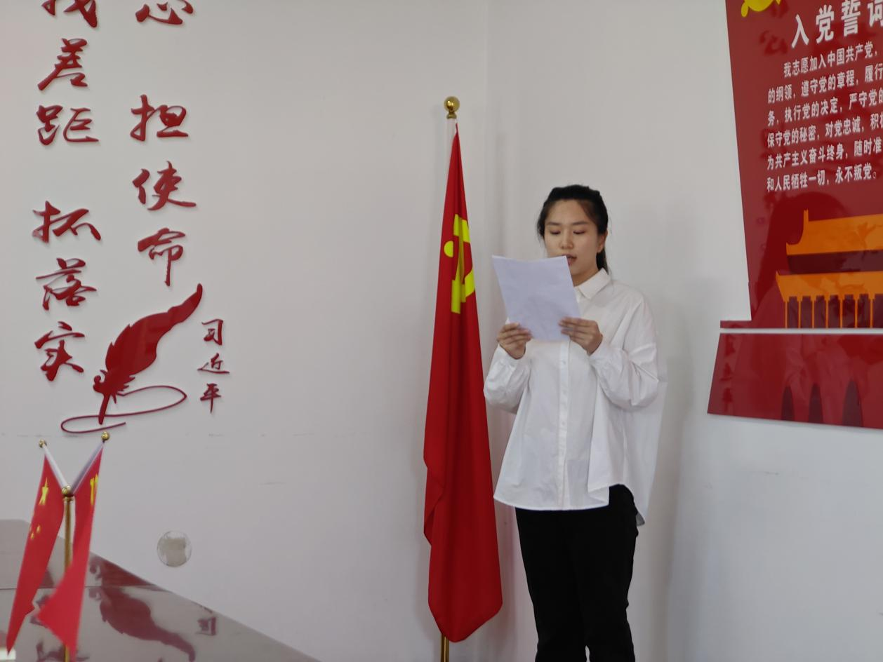 活动第三项,代表发言。学生新党员代表滕晓慧发言,深情地表达了加入党组织的激动心情,分享了自己对党的深刻认识,并明确了今后努力的方向。学院党总支书记孙美晖发言,强调了入党宣誓的重要意义,以“四坚”为切入点提出要求,要信仰坚定信仰、坚守纪律、坚持勤学笃行、坚韧拼搏奋斗。