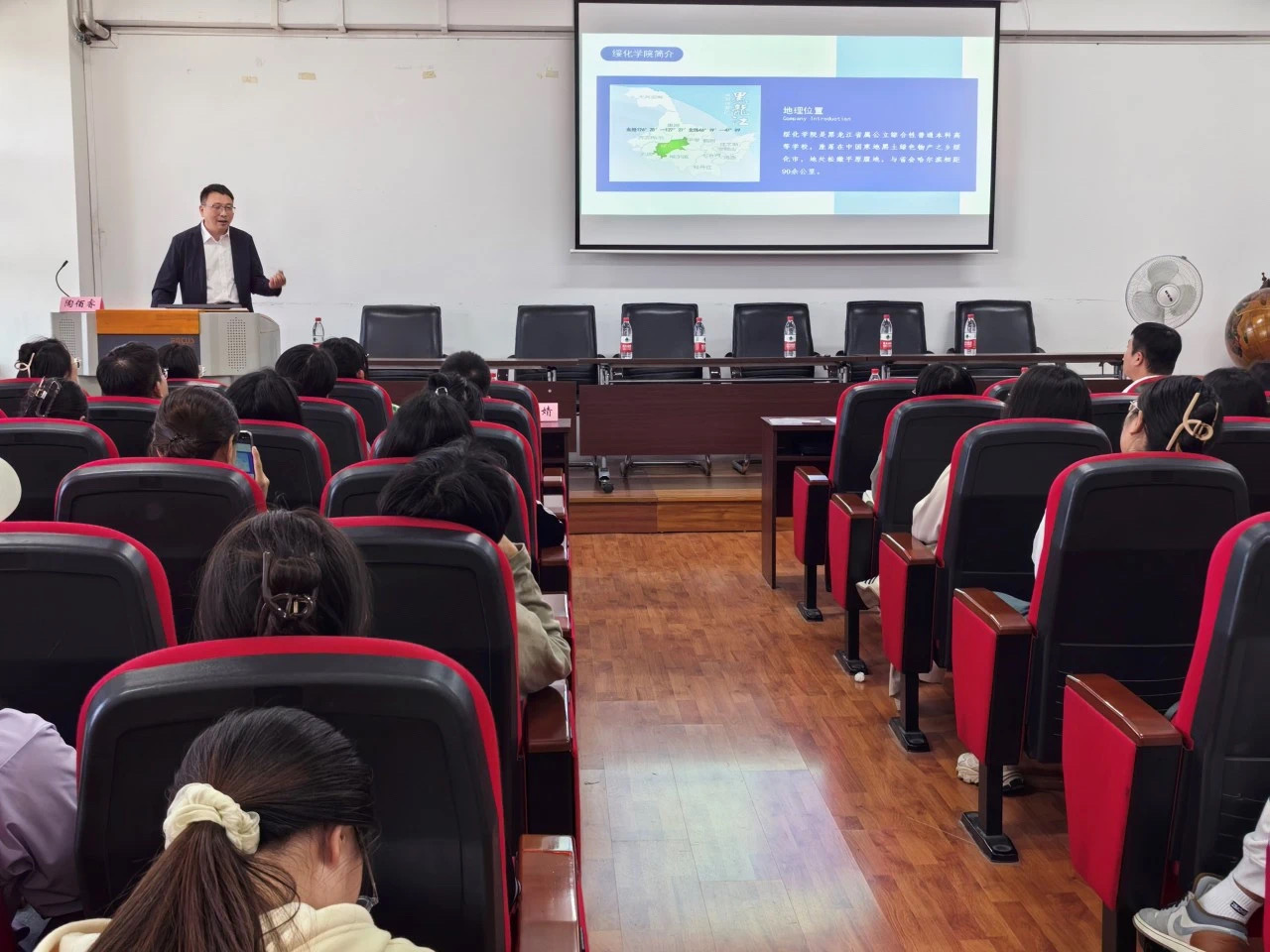 绥化学院党委副书记陶佰睿详细介绍了绥化学院的区位优势、办学特色、学科门类等基本概况,特别强调了绥化学院作为黑龙江省属公立综合性普通本科高等学校的独特优势。他指出,绥化学院以“厚德载物、经世致用”为校训,致力于培养具有创新精神和实践能力的高素质应用型人才。宣讲会重点介绍了绥化学院的人才政策。陶佰睿表示,绥化学院的人才政策具有三大优势:一是叠加性,人才可分别享受黑龙江省、绥化市以及绥化学院的人才政策;二是成长性,随着科研水平和学历的提升,在已享受的人才待遇基础上进行补差;三是开放性,硕士研究生入职三年后可攻读定向博士研究生,鼓励青年教师到行业企业参加实践锻炼。这些政策为人才成长提供了广阔的空间和有力的支持。