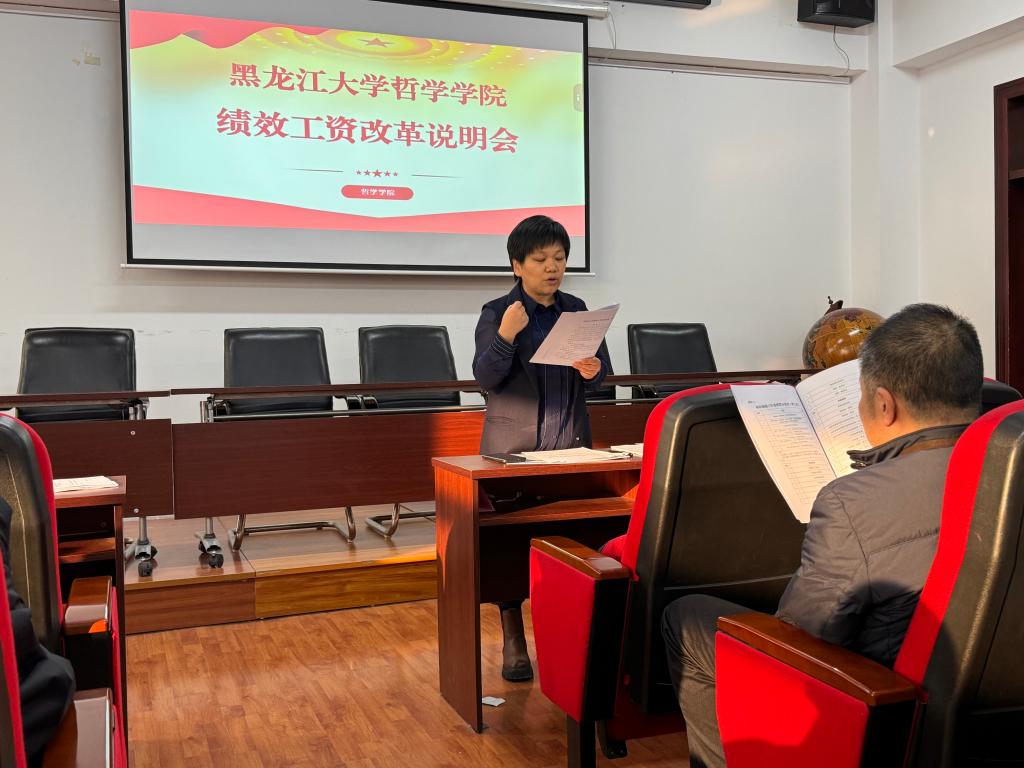 教学科研单位增值性评价指标指导意见(试行)》。在教学方面,采取“宏观切块、微观调整”的原则,设置教师年度教学工作量教学线,强化教授为本科生上课;在科研方面,包括基础科研工作量和科研激励工作量两个部分,鼓励教师积极参与学科研究、学术交流活动,提升学院的学术影响力。同时,对于积极参与社会服务,将哲学知识运用到社会实践中的教师行为也给予肯定和奖励。通过文件的解读学习让教职工们对绩效工资改革有了更清晰的认识,明确了努力的方向。