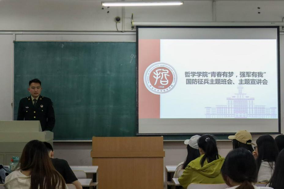 开展了"青春有梦 强国有我"征兵动员宣讲会。学院退役士兵唐旭同学主讲,2024级学生参加宣讲会。