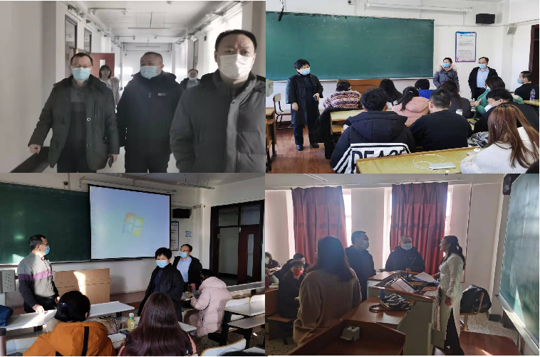 孙美晖书记、蒋红雨院长、张丽丹副书记、周来顺副院长、高来源副院长,以及教务员孟老师、辅导员焦老师,组成的教学秩序检查组,深入线上、线下课堂检查学院各年级学生新学期返校复课情况。