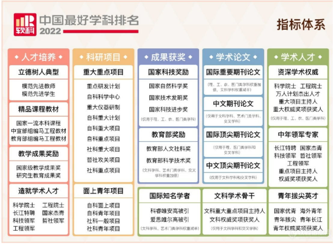 软科中国最好学科排名指标体系包括五个一级指标和十七个二级指标体系,指标体系体现教育部学科建设的评估的基本要求。此次学科排名的提升极大地鼓舞了哲学学科教学与科研团队的建设热情和发展自信,美剧天堂