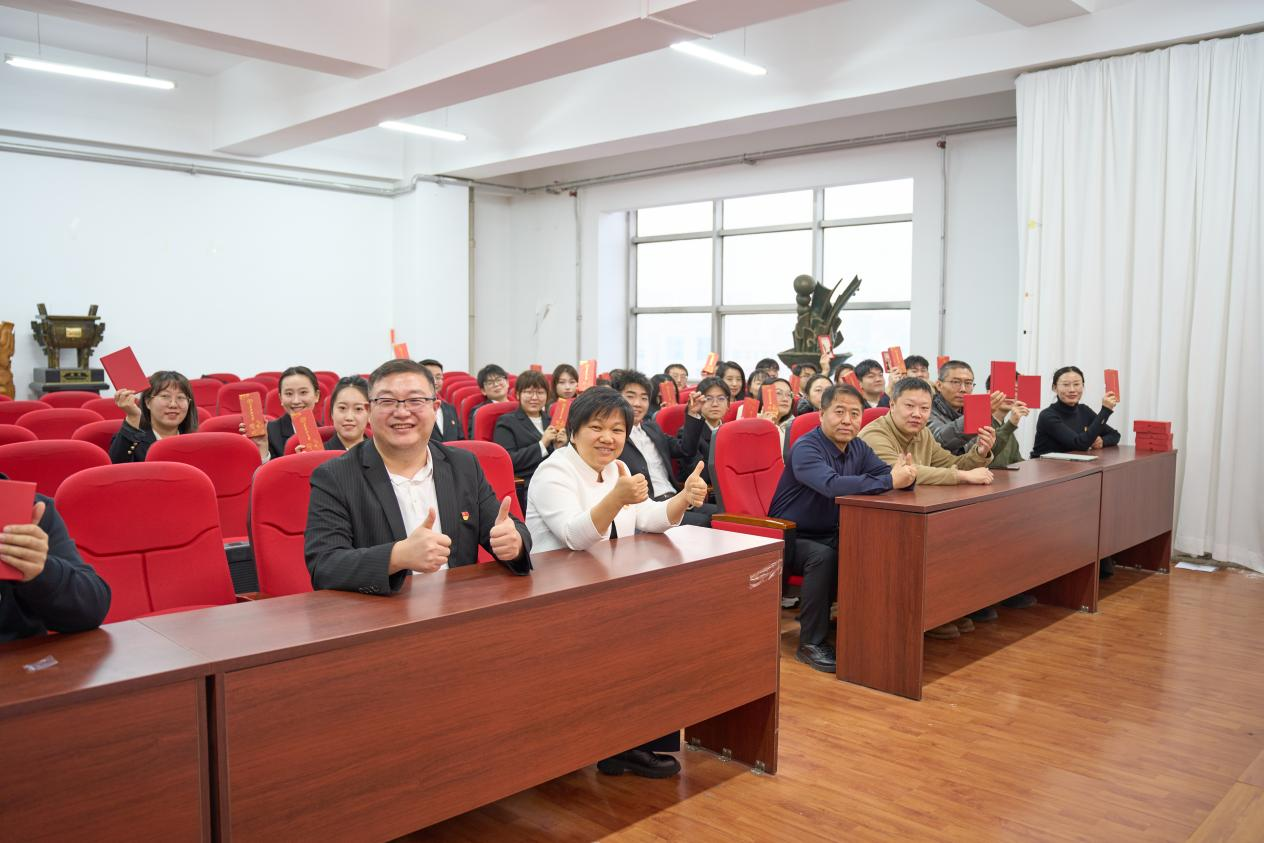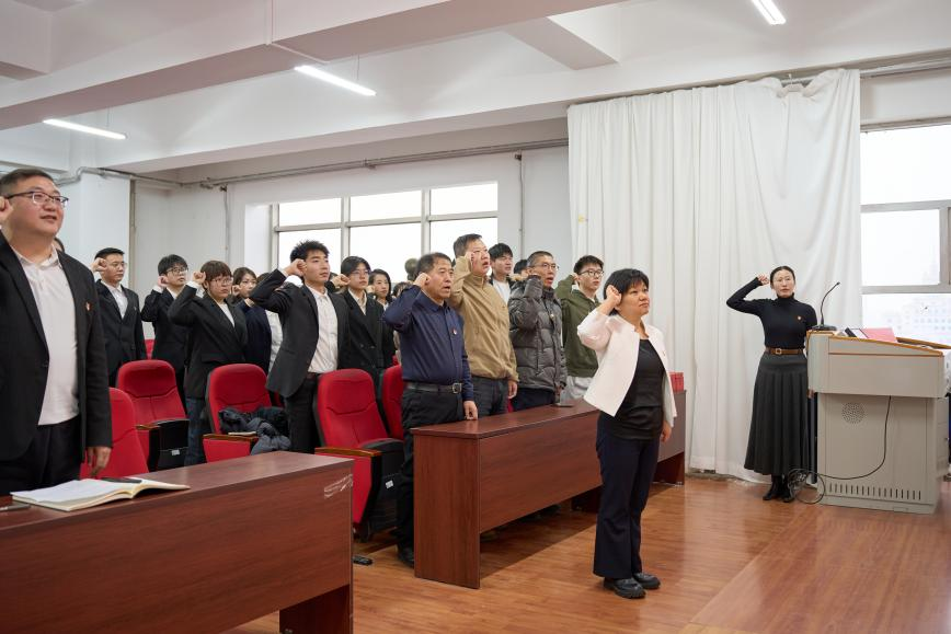 誓词铿锵映初心,党性淬炼铸忠诚。全体师生党员起立,面向鲜红的党旗,举起右拳,庄严宣誓,铿锵有力的誓言回荡在会议室的每一个角落,既是对党的忠诚承诺,也是对初心使命的坚定坚守,让在场每一位党员接受了一次深刻的党性教育和精神洗礼。